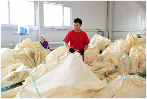 Ақтөбе индустриялық аймағында орналасқан FIBC Kazakhstan ЖШС вагондарға арналған қаптамалар, биг-бэгтер, тенттер және полипропилен таспасын өндіреді, деп хабарлайды Isker Tilshi облыс әкімдігінің баспасөз.